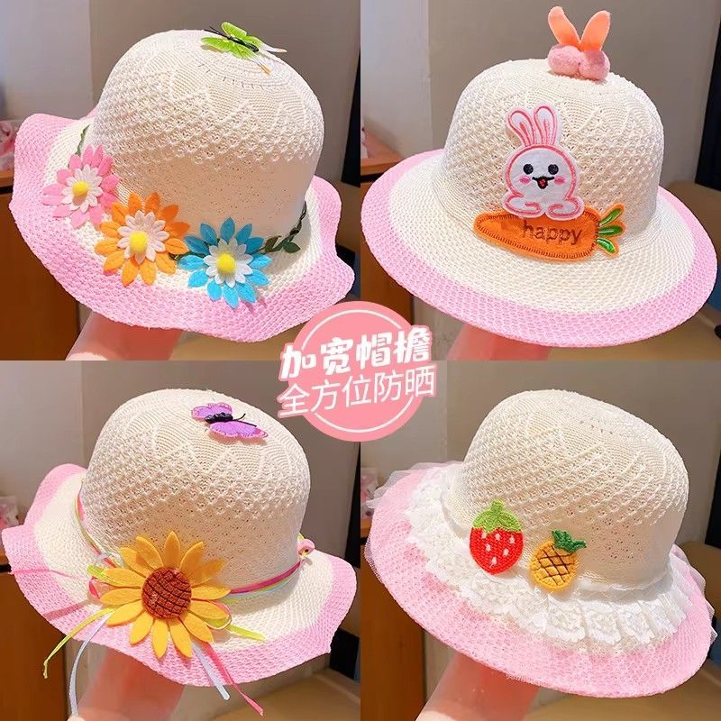 Cute Floral Straw Sun Hat & Bucket Hat Set for Girls